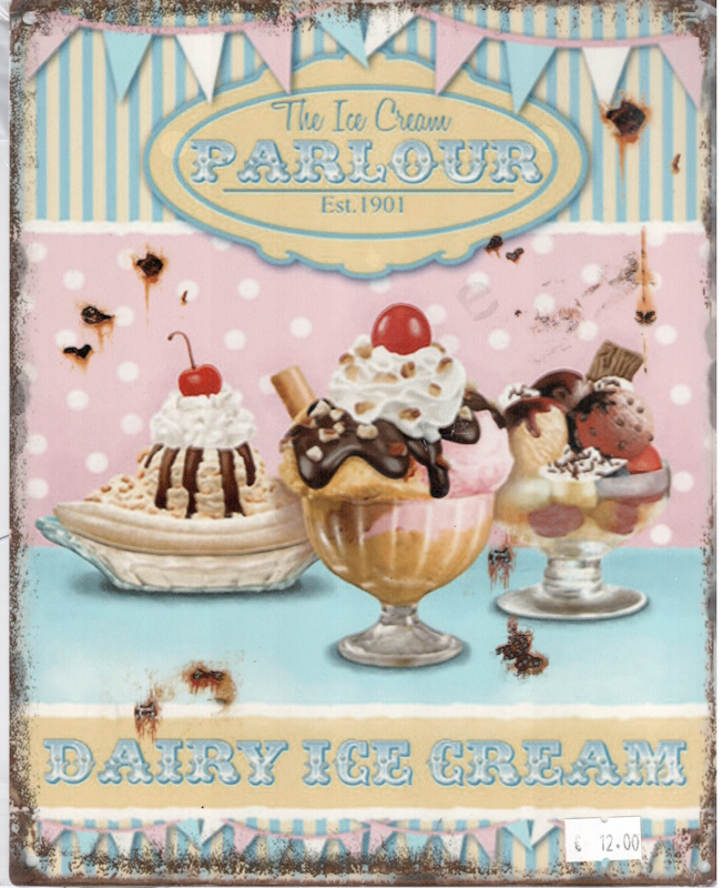Blechschild Nostalgie „Ice Cream“ aus Eisen Zum Hängen (inkl. Draht) , oder einfach hinstellen… Länge : 25cm Breite : 20cm Artikelnummer : C&Ee6Y5105en .